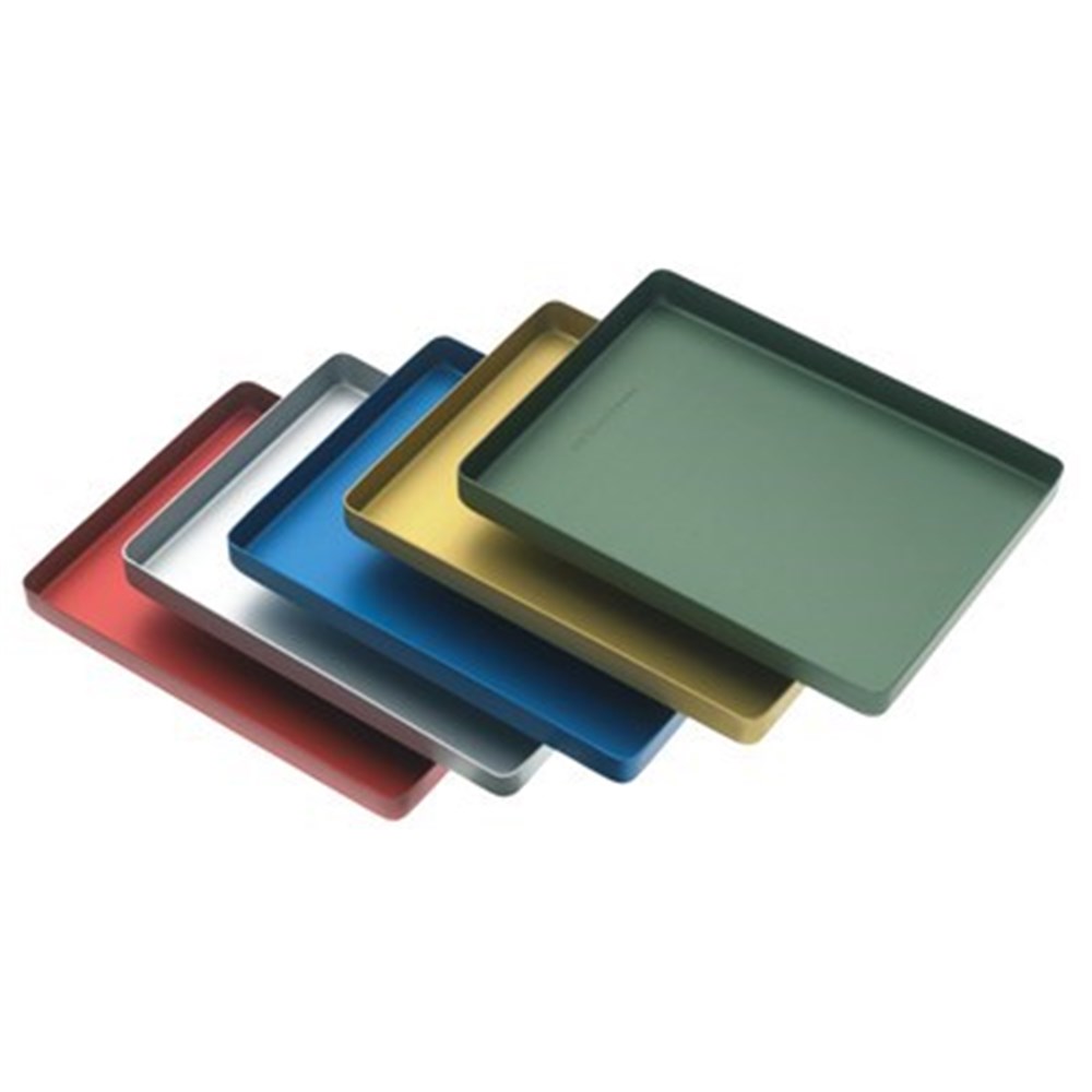 Trays in anodised aluminium and stainless steel, solid or perforated. Anodised aluminium trays are available in five colours - red, grey, blue, yellow and green, perforated or solid. Lid is supplied separately. Endodontic trays available complete with lid and accessories in regular and mini sizes. Stainless steel trays are made of high quality Swedish stainless steel, available as solid or perforated. Discolouration may occur if chemicals are used during cleaning process.
