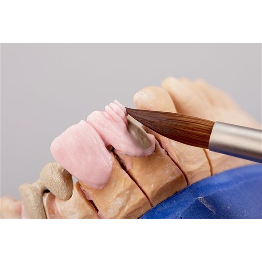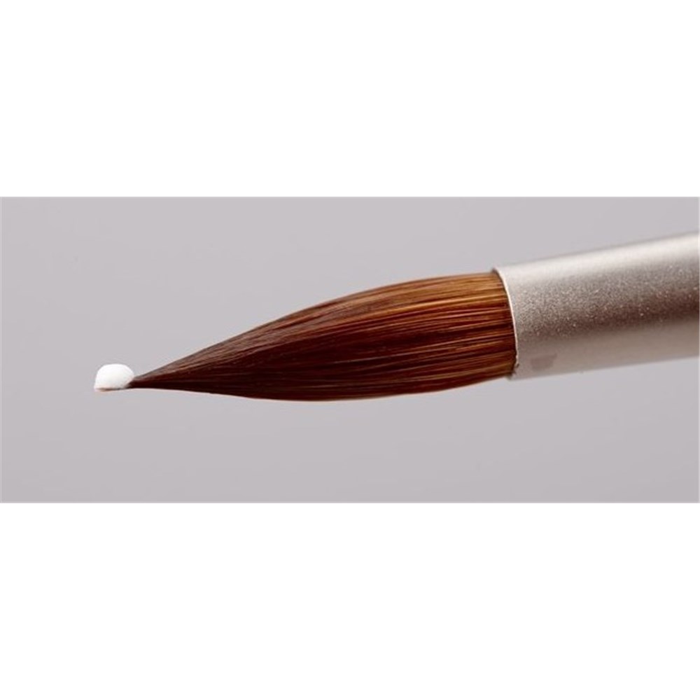 • Slim: Slim shape of brush in the upper third provides minimal moisture release and aids delicate building up.