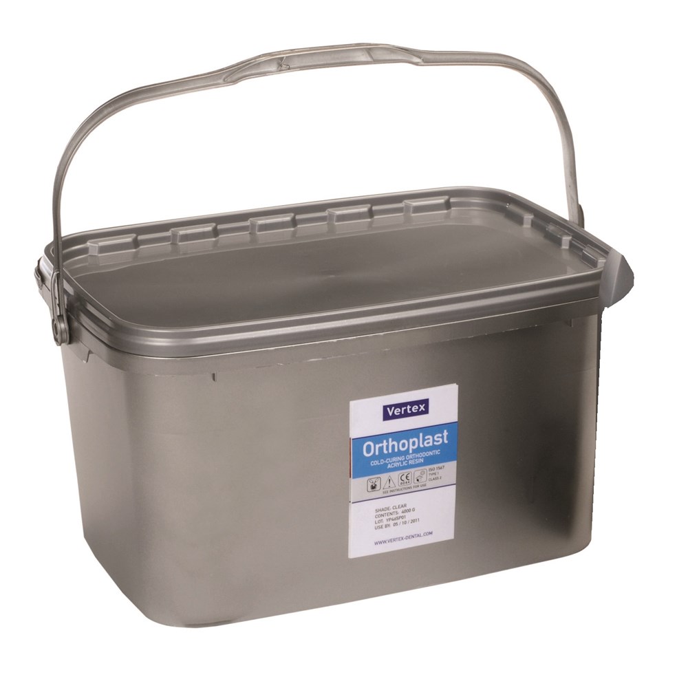 Vertex Orthoplast is a self polymerizing acrylic for orthodontic appliances. Its unique grain structure makes this acrylic suitable for the spray-on technique. Pouring time (at 22 ° C) 9 minutes Dough time (at 22° C) 6 minutes Curing time 20 minutes at 55°C and 2.5 bar