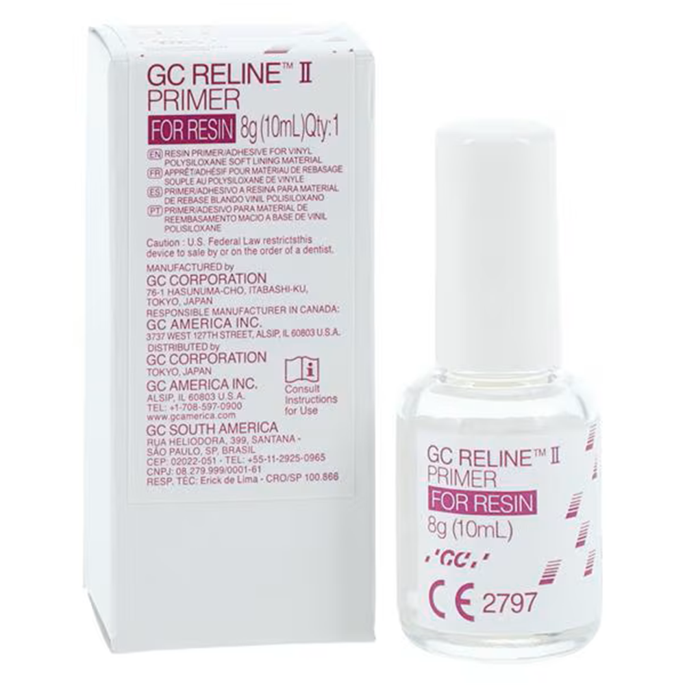 - RELINE II Primer for Resin provides a long-lasting adhesion to the underlying denture