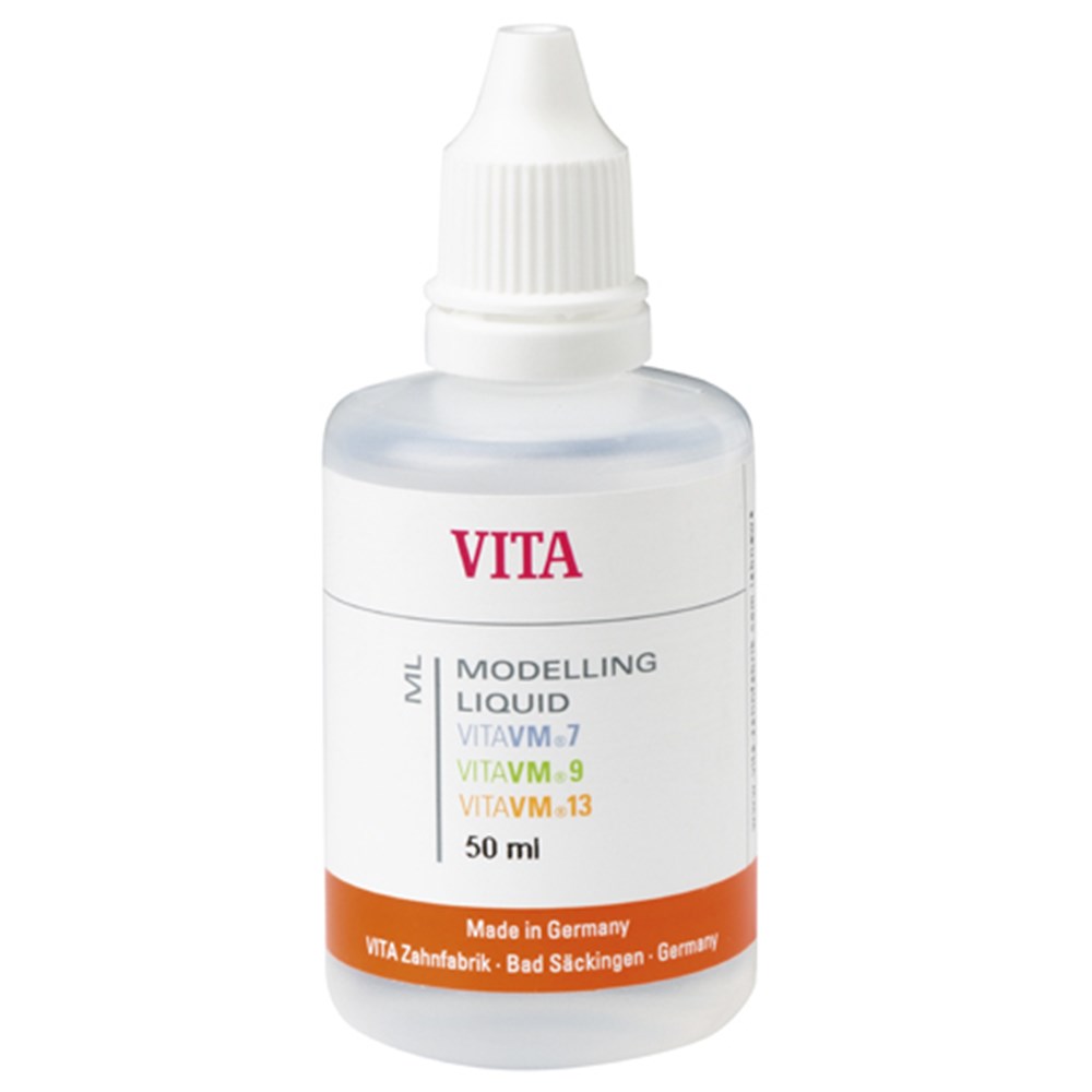 Standard modeling liquid for mixing VITA VM 7, VM 9, VM 13 BASE DENTINE, TRANSPA DENTINE, ENAMEL and EFFECT materials.