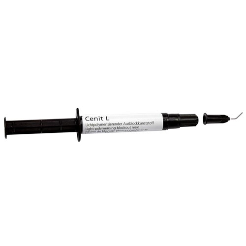 Light-curing PMMA resin with facilitated application: Dosing aid enables applications of up to 2 mm layer thickness. For the production of space maintainers of medical and bleaching splints. Block out of undercuts or mounting of broken teeth or to fill up air bubbles in the working models. Polymerises in each standard laboratory light unit with a spectral range of 300–500 nm, e.g. EyeVolution®.