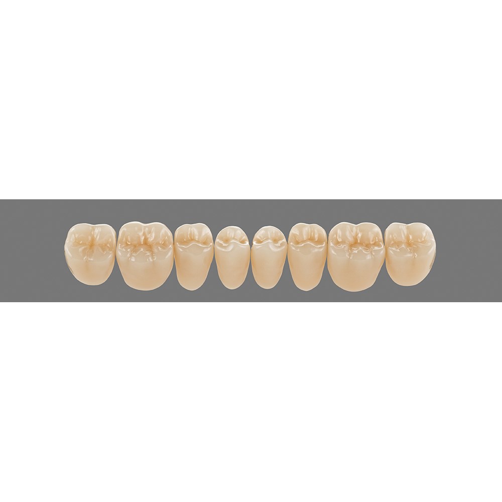 Natural, multifunctional premium posterior teeth made of MRP composite.