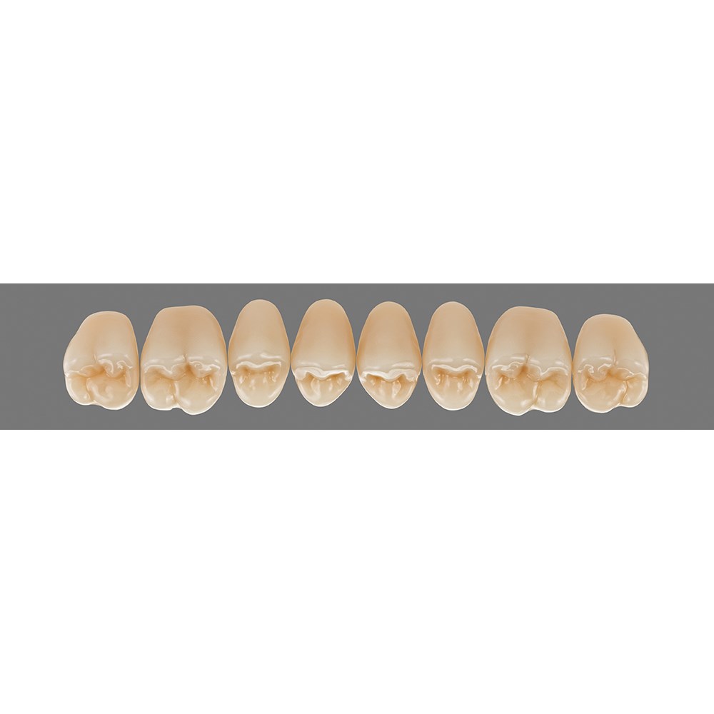 Natural, multifunctional premium posterior teeth made of MRP composite.
