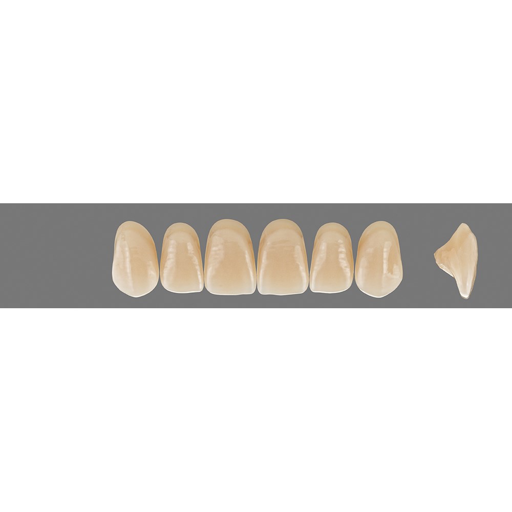 Basic anterior teeth made of HC polymer material for solid standard dentures.