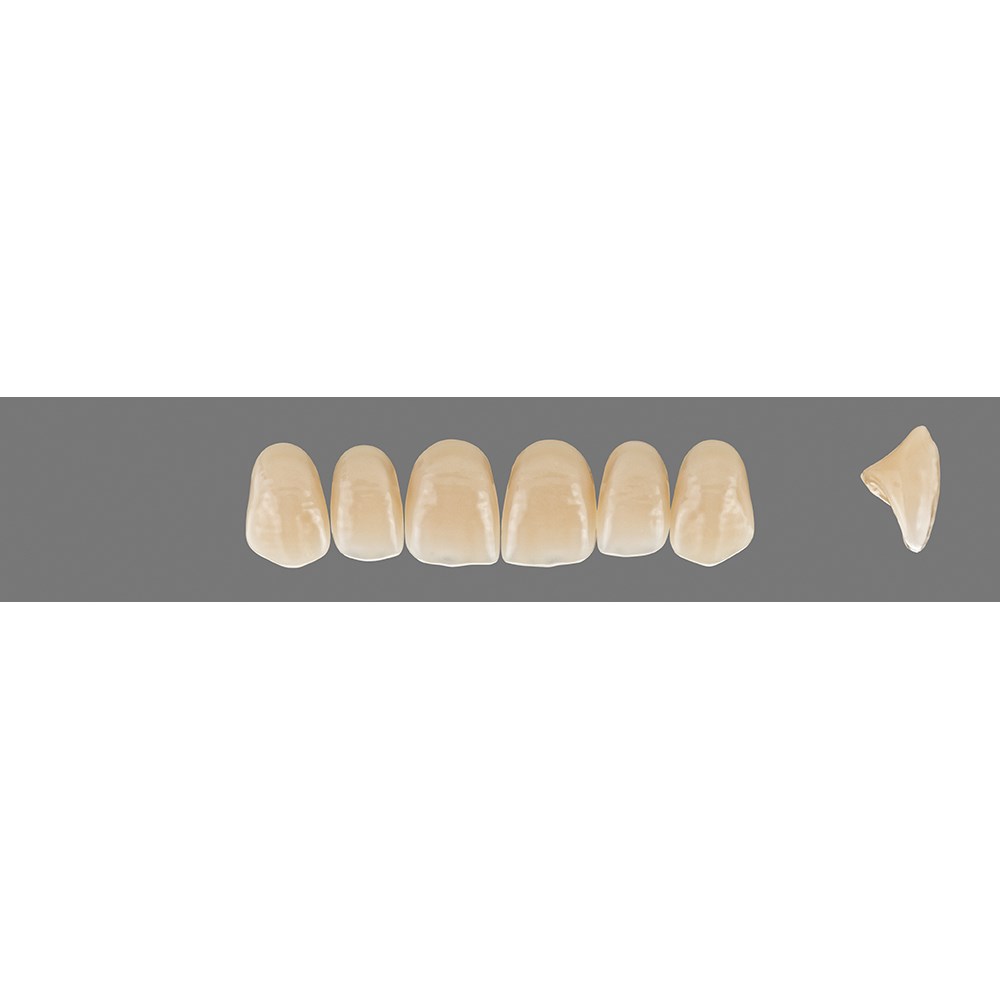 Basic anterior teeth made of HC polymer material for solid standard dentures.