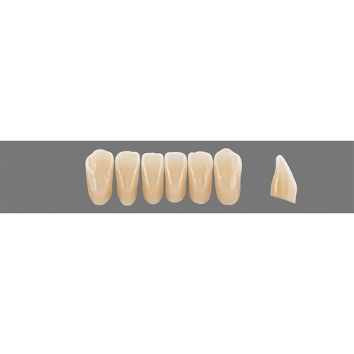 Lifelike, detailed premium anterior teeth made of MRP composite.