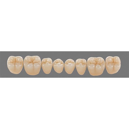 Natural, detailed premium posterior teeth made of MRP composite.