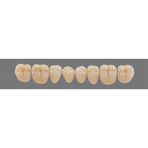 Natural, detailed premium posterior teeth made of MRP composite.