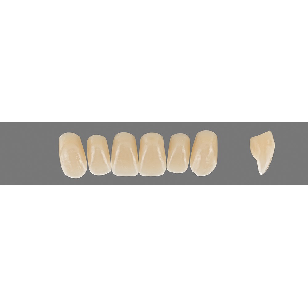 Lifelike, detailed premium anterior teeth made of MRP composite.