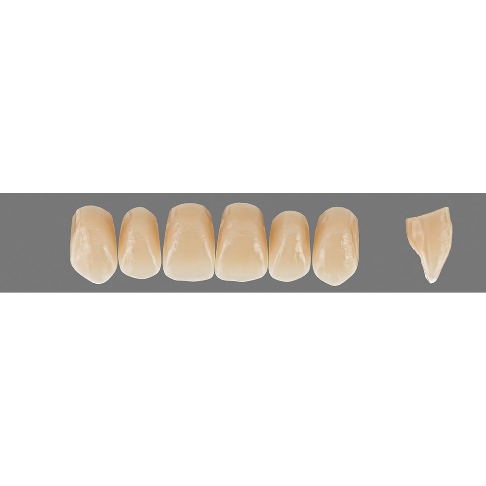Lifelike, detailed premium anterior teeth made of MRP composite.
