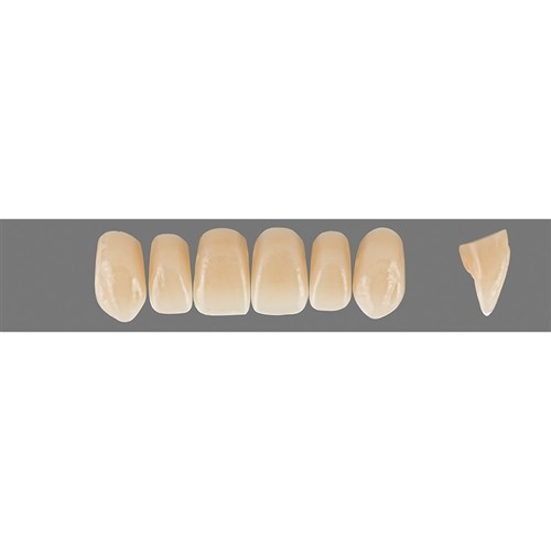 Lifelike, detailed premium anterior teeth made of MRP composite.