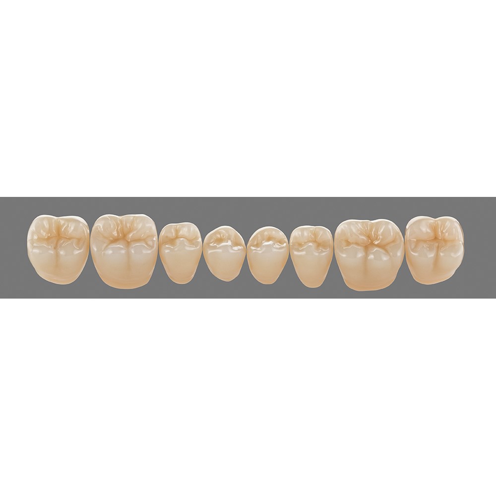 Natural, detailed premium posterior teeth made of MRP composite.