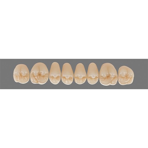 Natural, detailed premium posterior teeth made of MRP composite.