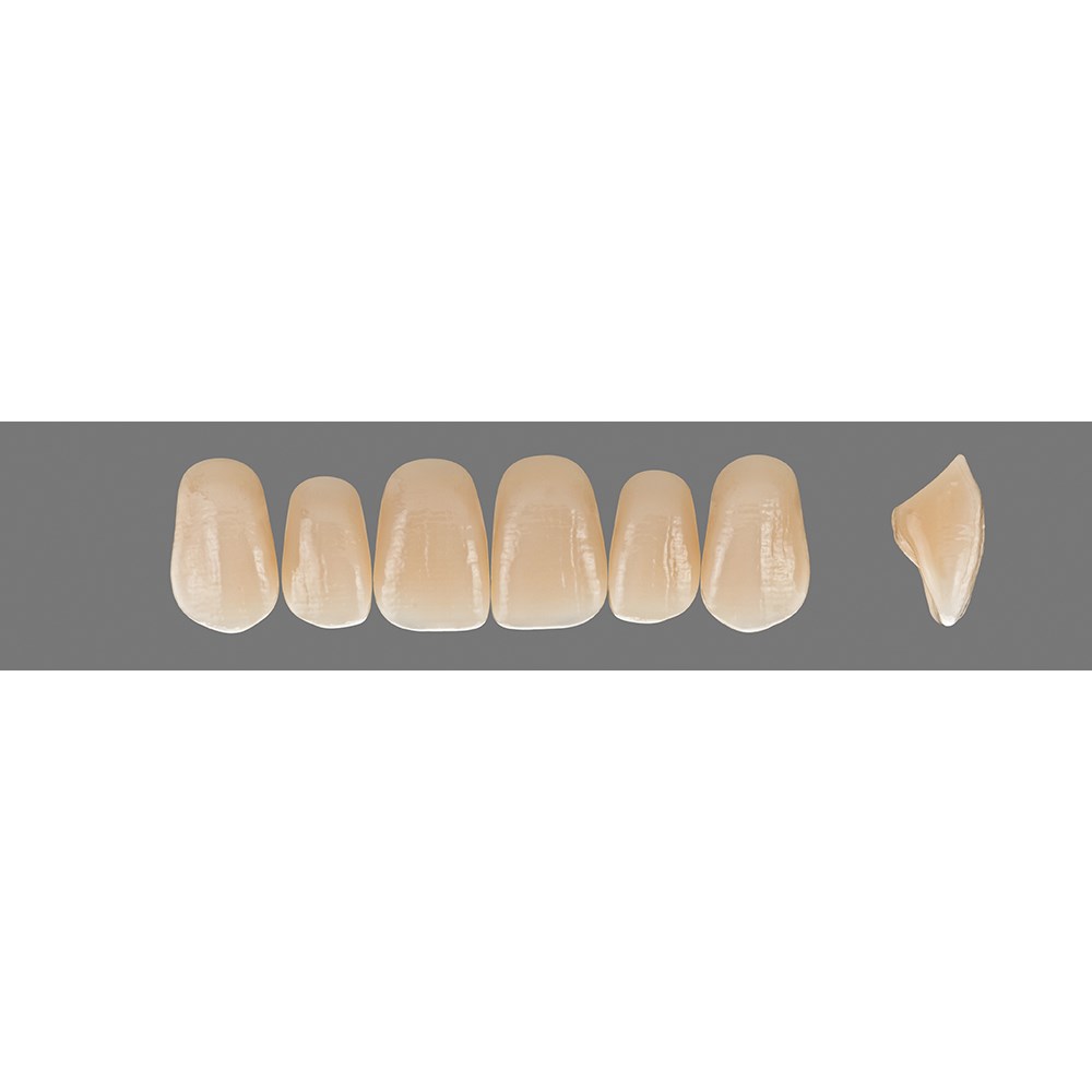 Lifelike, elaborate premium anterior teeth made of MRP composite.