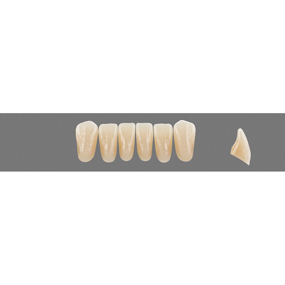 Lifelike, premium anterior teeth made of MRP composite with added translucency.