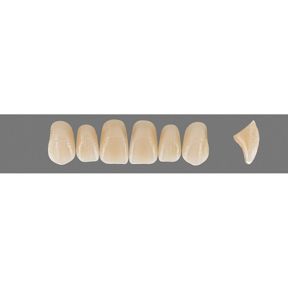 Lifelike, premium anterior teeth made of MRP composite with added translucency.