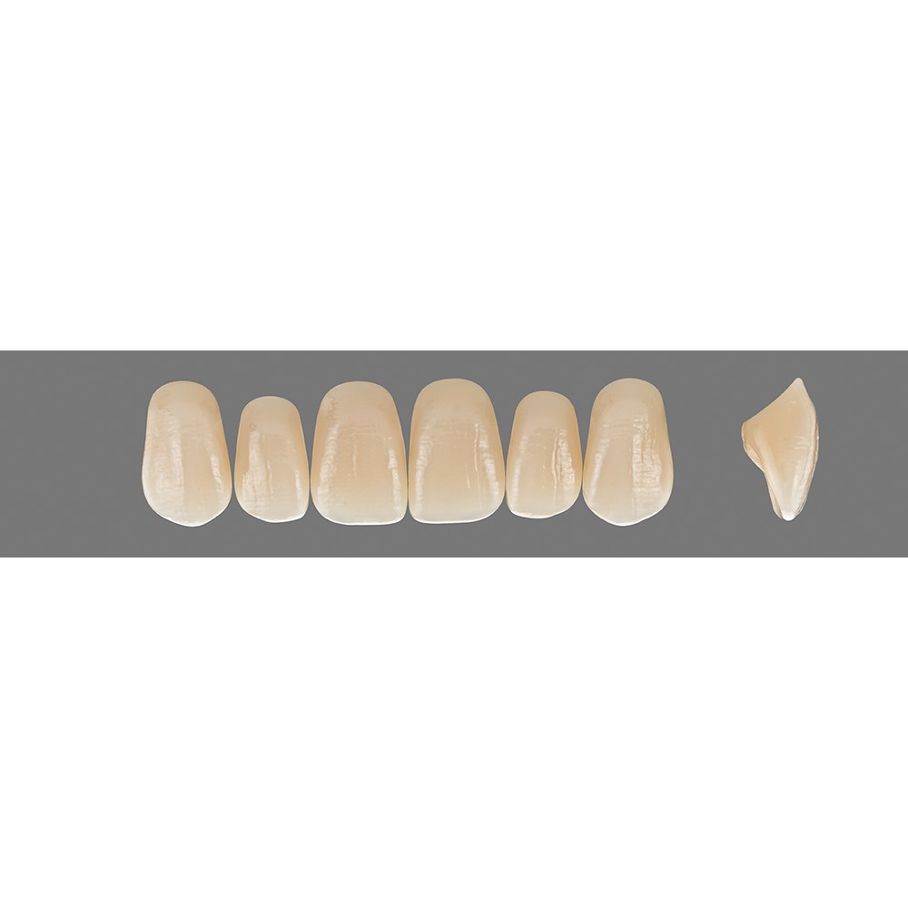 Lifelike, premium anterior teeth made of MRP composite with added translucency.