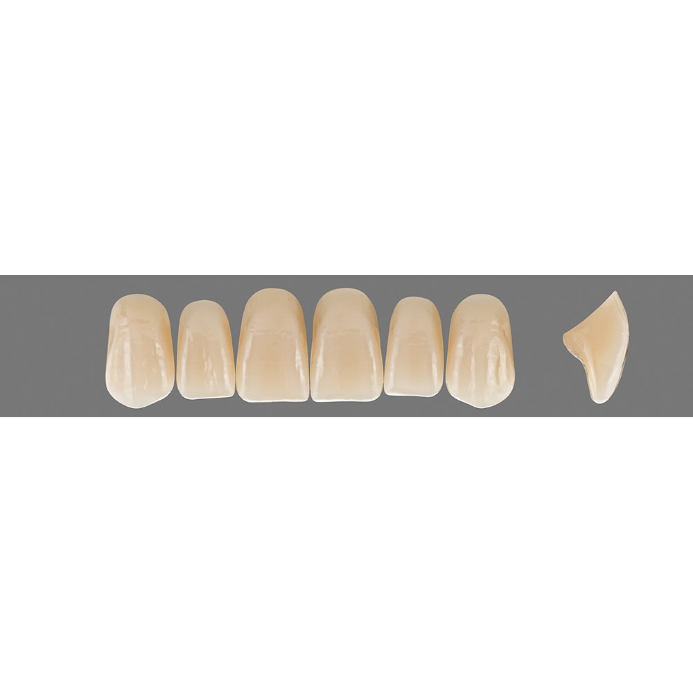 Lifelike, premium anterior teeth made of MRP composite with added translucency.