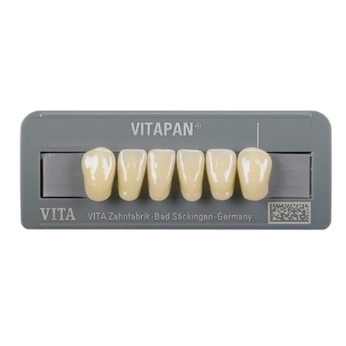 Outstanding physical properties and excellent aesthetics are combined in VITAPAN teeth. The intricate manual layering technique as well as the individual characterisation add a natural appearance to the teeth. Shade stability even after grinding, minimum water absorption and extremely low affinity to plaque ensure perfect results for demanding patients.