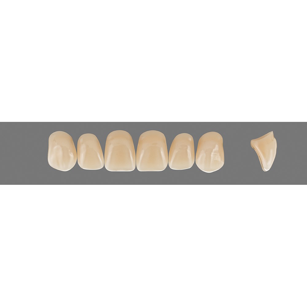 Outstanding physical properties and excellent aesthetics are combined in VITAPAN teeth. The intricate manual layering technique as well as the individual characterisation add a natural appearance to the teeth. Shade stability even after grinding, minimum water absorption and extremely low affinity to plaque ensure perfect results for demanding patients.