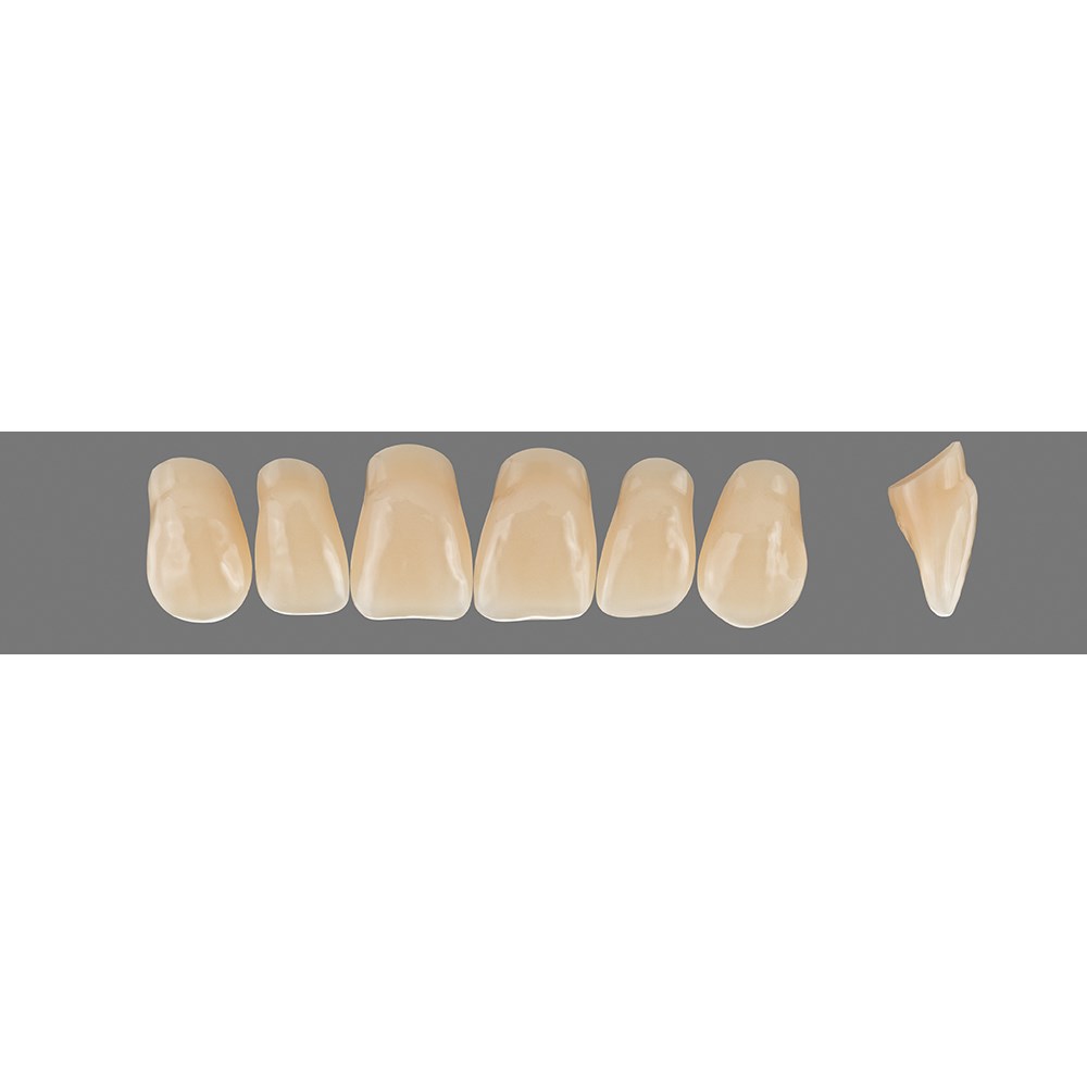 Outstanding physical properties and excellent aesthetics are combined in VITAPAN teeth. The intricate manual layering technique as well as the individual characterisation add a natural appearance to the teeth. Shade stability even after grinding, minimum water absorption and extremely low affinity to plaque ensure perfect results for demanding patients.