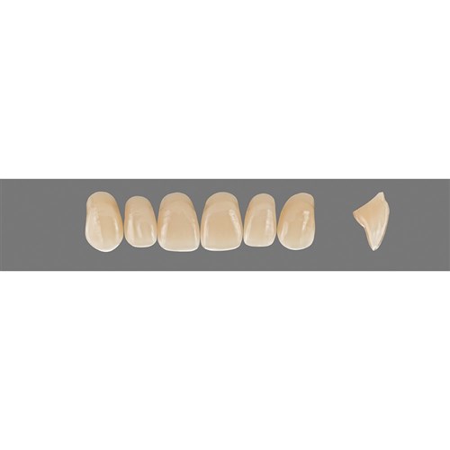 Age-appropriate, universal anterior teeth made of MRP composite.