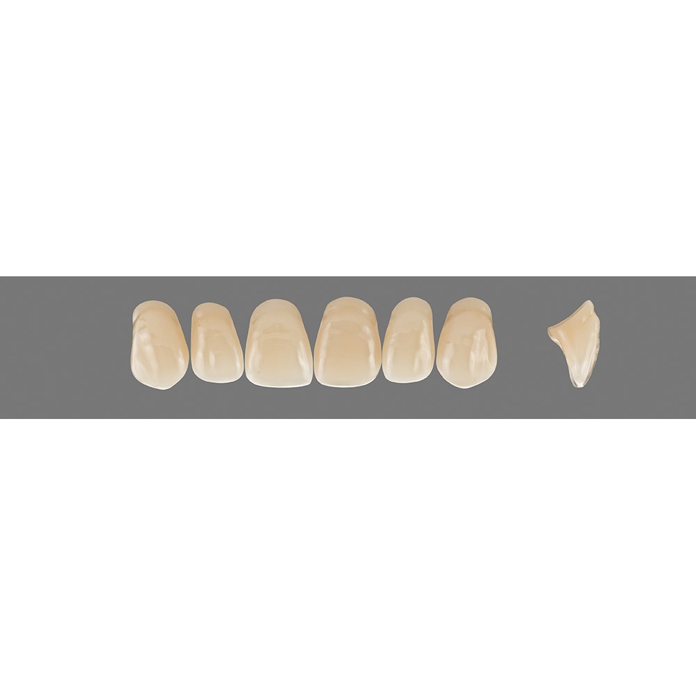 Outstanding physical properties and excellent aesthetics are combined in VITAPAN teeth. The intricate manual layering technique as well as the individual characterisation add a natural appearance to the teeth. Shade stability even after grinding, minimum water absorption and extremely low affinity to plaque ensure perfect results for demanding patients.
