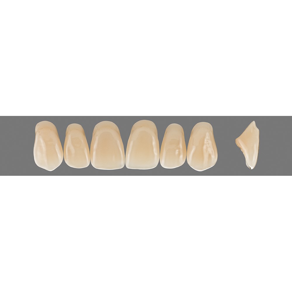 Outstanding physical properties and excellent aesthetics are combined in VITAPAN teeth. The intricate manual layering technique as well as the individual characterisation add a natural appearance to the teeth. Shade stability even after grinding, minimum water absorption and extremely low affinity to plaque ensure perfect results for demanding patients.