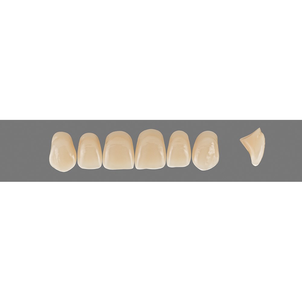 Outstanding physical properties and excellent aesthetics are combined in VITAPAN teeth. The intricate manual layering technique as well as the individual characterisation add a natural appearance to the teeth. Shade stability even after grinding, minimum water absorption and extremely low affinity to plaque ensure perfect results for demanding patients.