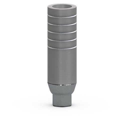Hexed Custom Cast Abutment used for single-unit screw-retained or custom abutment cement-retained restorations. Non-hexed Custom Cast Abutment used for multiple-unit, screw retained restorations. Pre-assembled with the Abutment Screw (PXAS). Gold Alloy base with natural acetyl (Delrin® or Pomalux®) sleeve. Final torque: 30 Ncm.