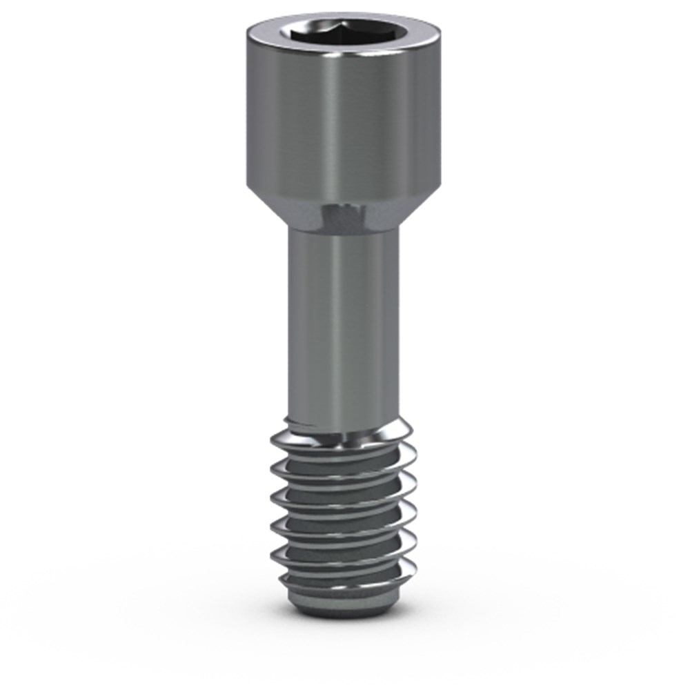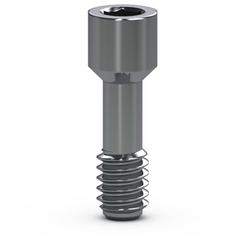 Fits all implant prosthetic platforms. Low profile screw head. Packaged with all two-piece abutments, except 3.0mm Custom Ti abutment and Angled Multi-unit abutments that are packaged with the PXMUAS. Utilizes the .050” (1.25mm) Hex Driver. Titanium Alloy. Final torque: 30 Ncm.