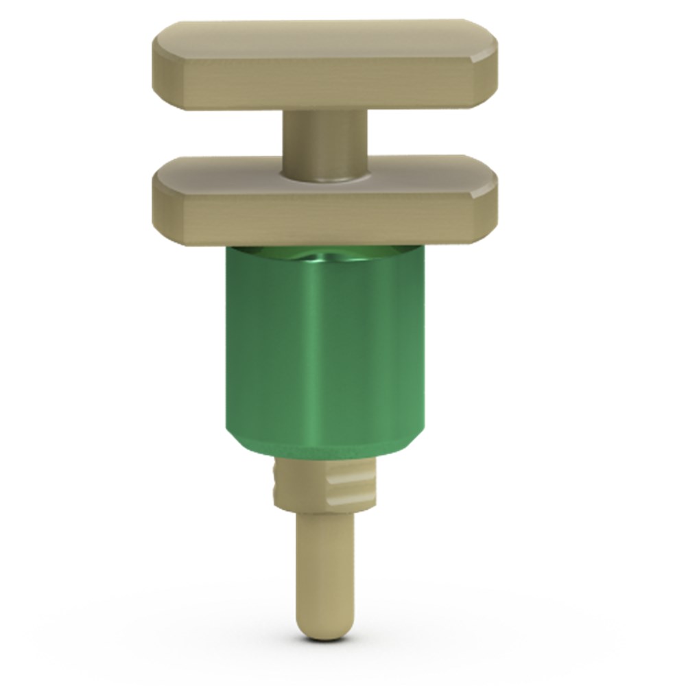 Color-coded radiopaque titanium ring used to verify seating on a radiograph. Emergence matches the emergence of the corresponding healing abutment.