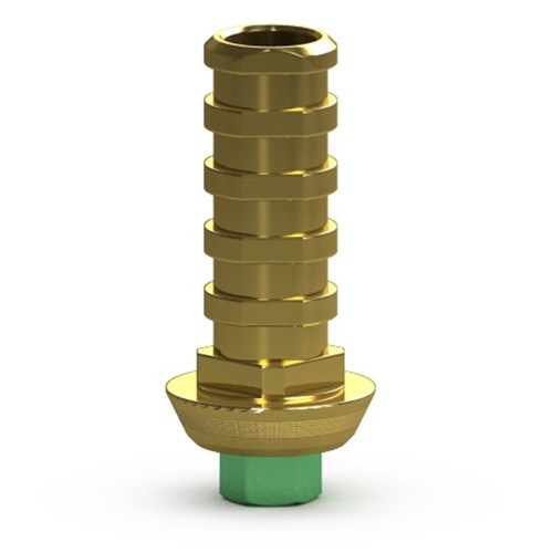 Use hexed for single-unit, screw retained, long term temporary restorations that require superior esthetics (>30 days). When a Laser-Lok component is used and temporarily removed for impression making or other restorative procedures, keep the removed Laser-Lok component in sterile saline until reinserting into the site. Packaged with an abutment screw (PXAS). Titanium Alloy for strength. TiN coated for esthetics. Final torque: 30Ncm. Refer to the Prosthetic Technique Manual (L02015) for appropriate handling techniques.
