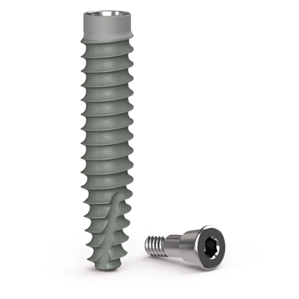 • Flat implant shoulder designed to reduce vertical discrepancy by allowing restorative components to sit on the implant shoulder preserving the conical connection for final abutments