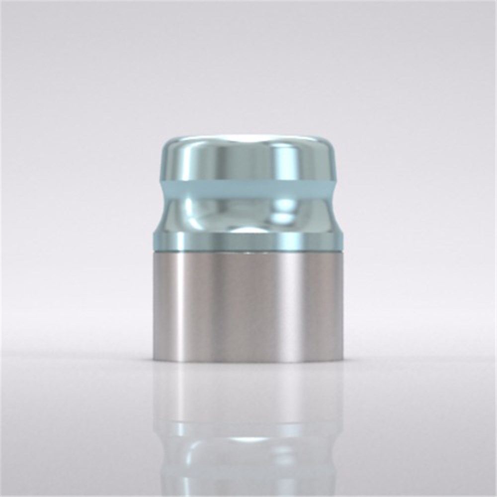 Impression cap for bar abutment, closed tray, sterile, light blue partially anodized.