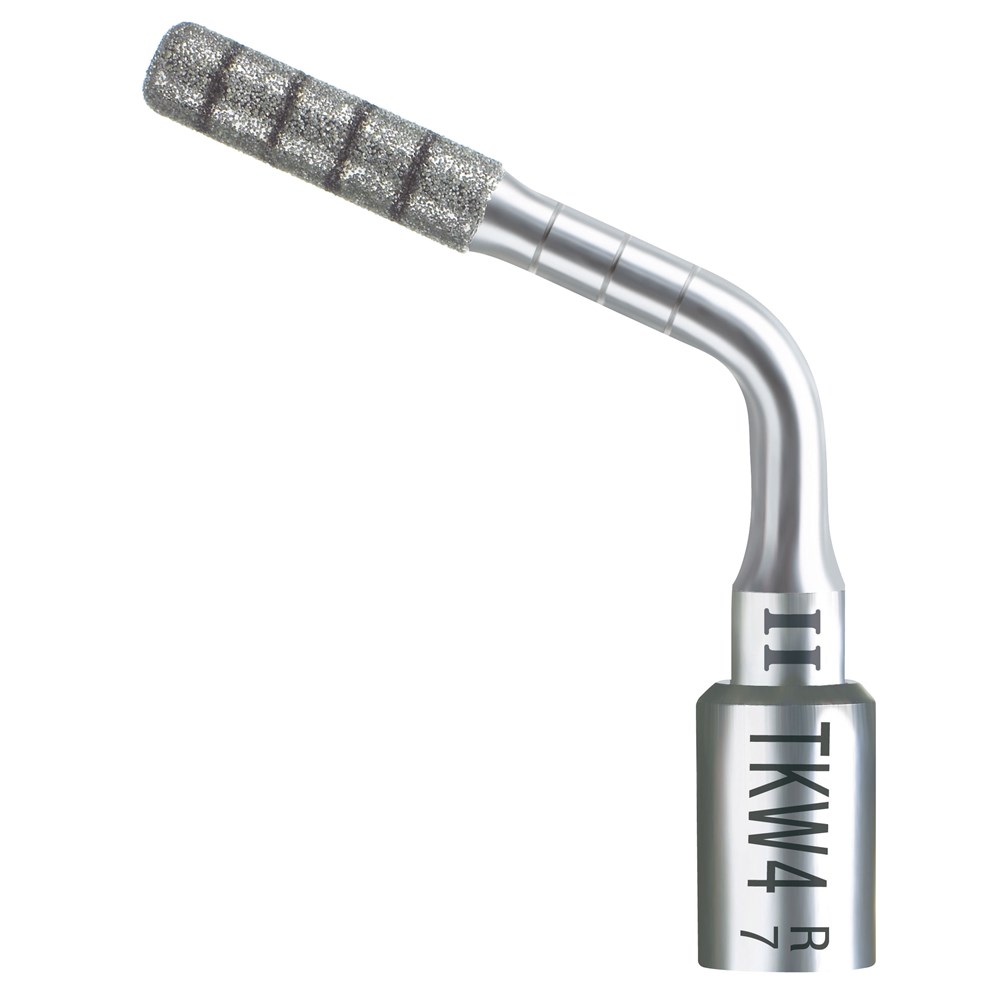 Flat end diamond-coated tip for the bone receptable preparation (before membrane elevation) and widening the access canal to the membrane.