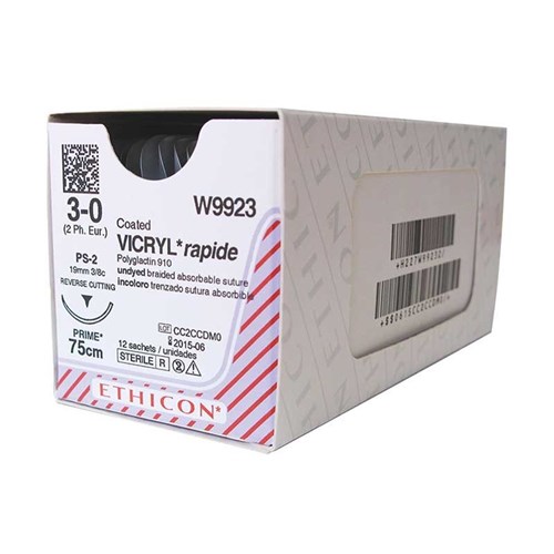 Johnson & Johnson Suture Ethicon Vicryl Rapid, 19mm, 3/0, 3/8 Circle Reverse Cut, 12-Pack