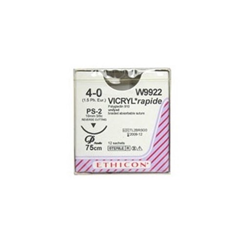 Johnson & Johnson Suture Ethicon Vicryl Rapid, 19mm, 4/0, 3/8 Circle Reverse Cut, 12-Pack