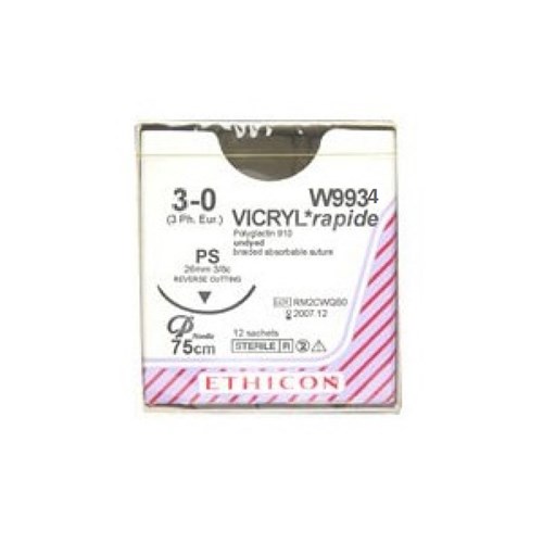 Johnson & Johnson Suture Ethicon Vicryl Rapid, 26mm, 3/0, 3/8 Circle Reverse Cut, 12-Pack