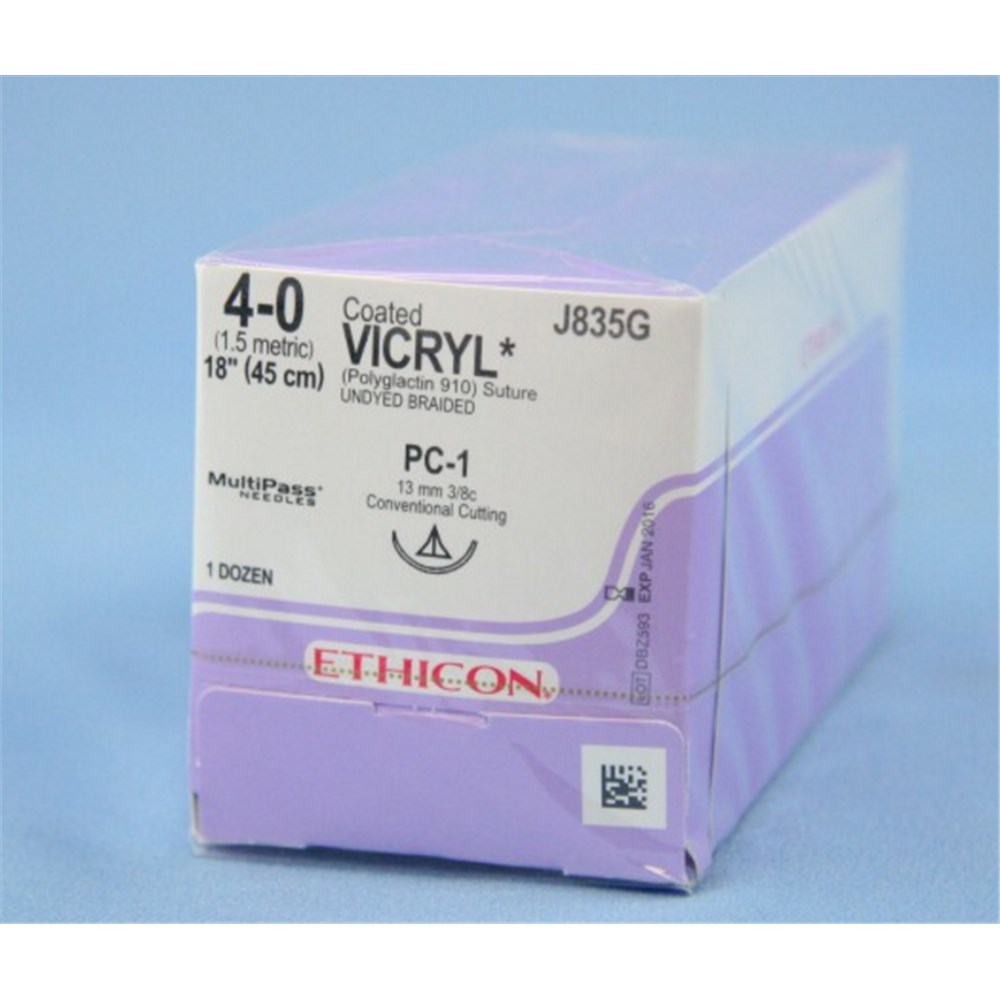 Johnson & Johnson Suture Vicryl Plus, 13mm, 4/0, PC1, 3/8 Circle Conventional Cut, Undyed, 12-Pack