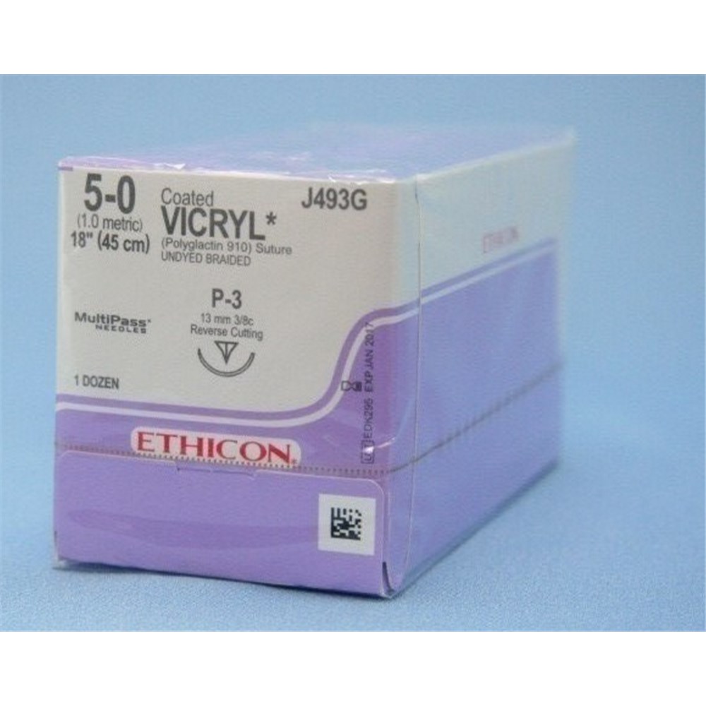 Johnson & Johnson Suture Vicryl Plus, 13mm, 5/0, P3, 3/8 Circle Reverse Cut, Undyed, 12-Pack