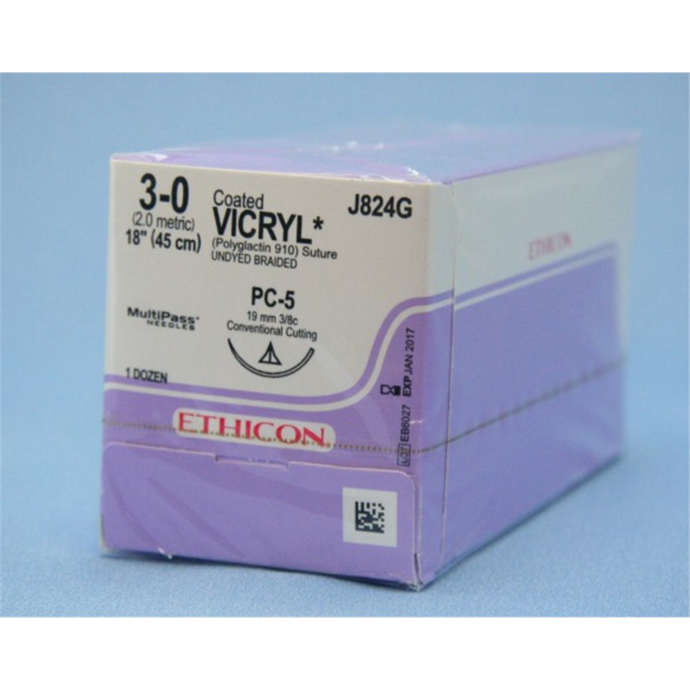 Johnson & Johnson Suture Vicryl Plus, 19mm, 3/0, PC5, 3/8 Circle Conventional Cut, Undyed, 12-Pack