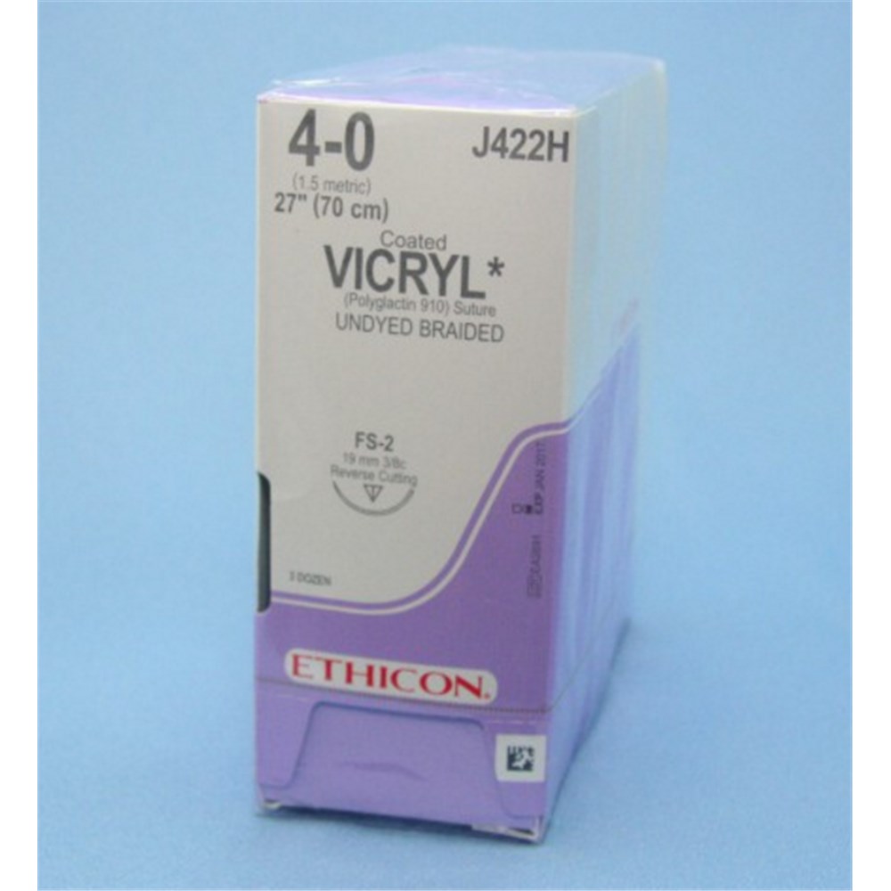 Johnson & Johnson Suture Vicryl Plus, 19mm, 4/0, FS2, 3/8 Circle Reverse Cut, Undyed, 36-Pack