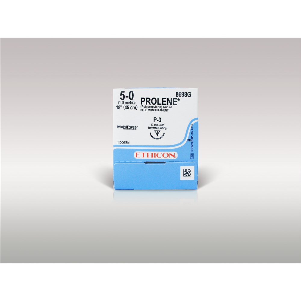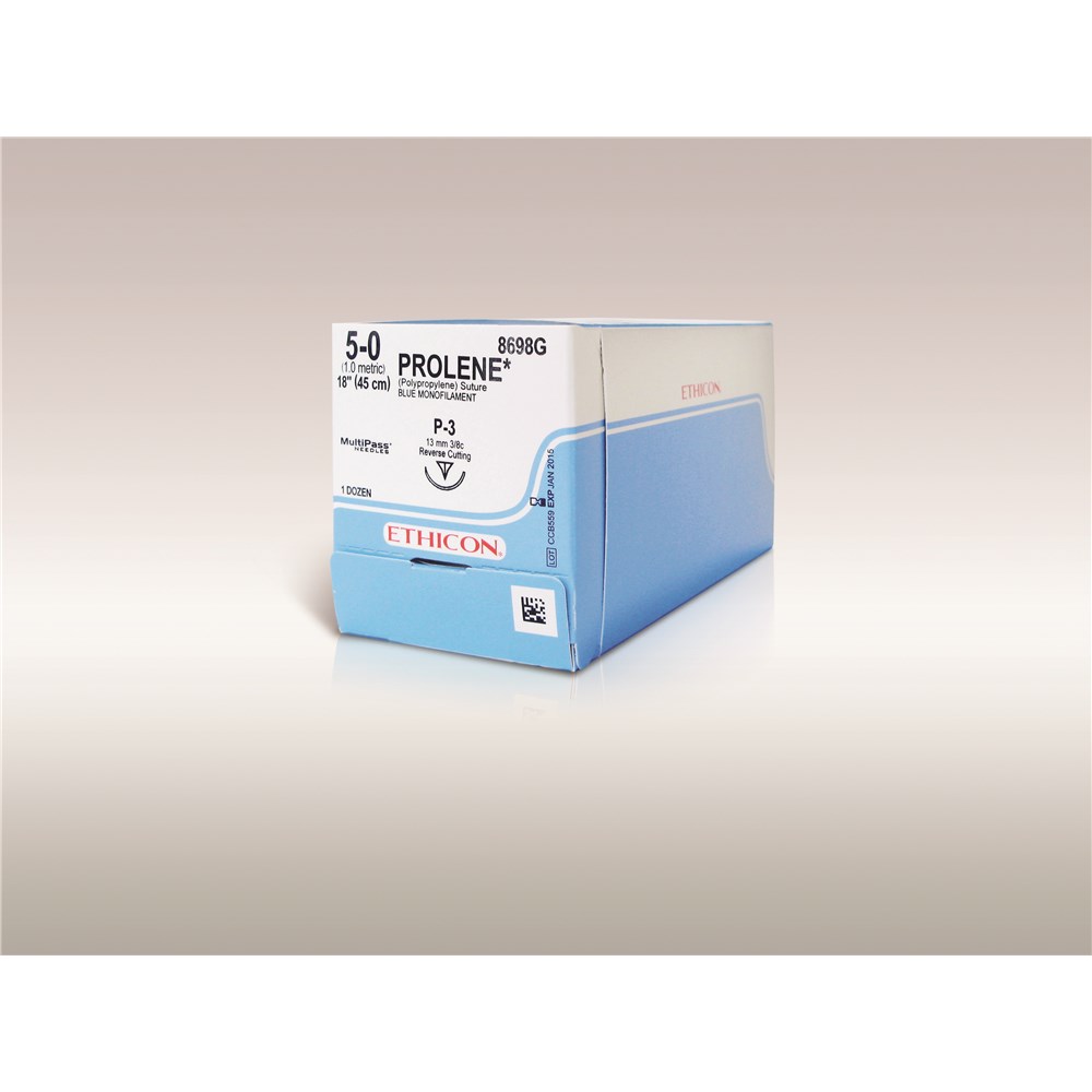 Johnson & Johnson Suture Ethicon Prolene, 13mm, 5/0, P3, 3/8 Circle Reverse Cut, 12-Pack