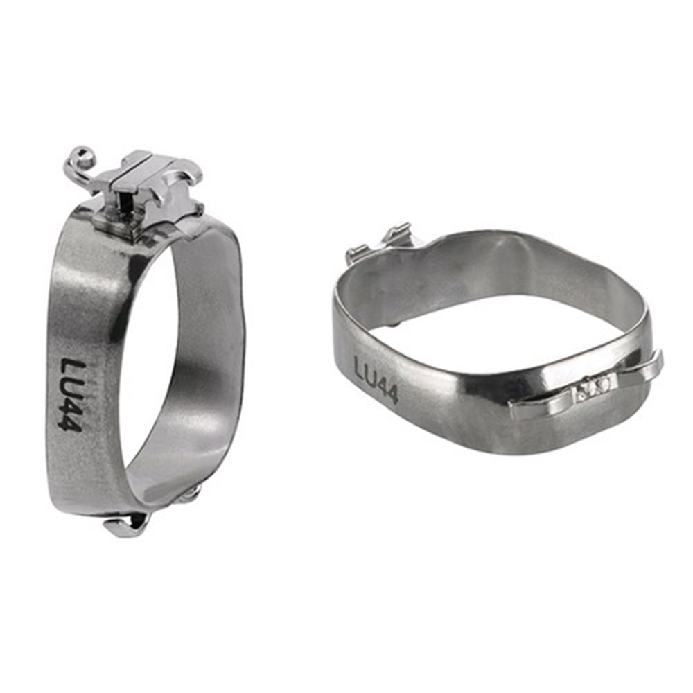 Superior tooth morphology bands with memory and elasticity maintained after prefit and removal. Increased occlusal edge strength to prevent deformation. Stiffer material to withstand additional pressure of extra oral and intra oral appliances. Full Tempered. Available with micro-etched interiors for maximum retention. Sizes from 29.5-44. Pack of 3.