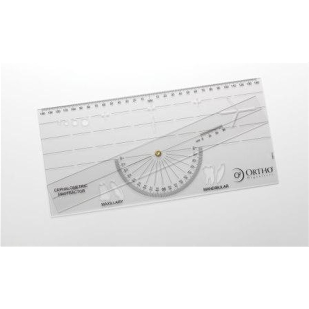 A combination tooth template and protractor for accurate cephalometric analysis.