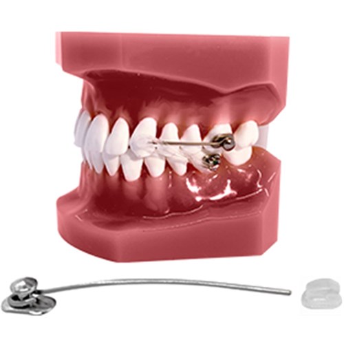 The D2 distalizing appliance was developed to simplify treatment of Class II cases during the initial stage of treatment.  The patented D2 design treats to a Class I platform by the intraoral elastic forces.  Molars are distally rotated into their desired position.  Take advantage of early treatment patient cooperation.  Brackets can be placed during or after the Class I correction is completed.4 Easy Steps:Etch and prep teeth to be bonded.  Bond Posterior Component.Mark and cut wire bar to determined length.Slide anterior component onto wire bar and bond to tooth.Apply elastic forces.Elastic Forces:Level 1 Clear - 1/4" 6 1/2oz    #A350-313Level 2 Clear - 1/4" 8 1/2oz    #A350-314Kit includes: Set of 2 arms - Clear Pad on Cuspid