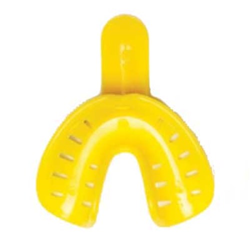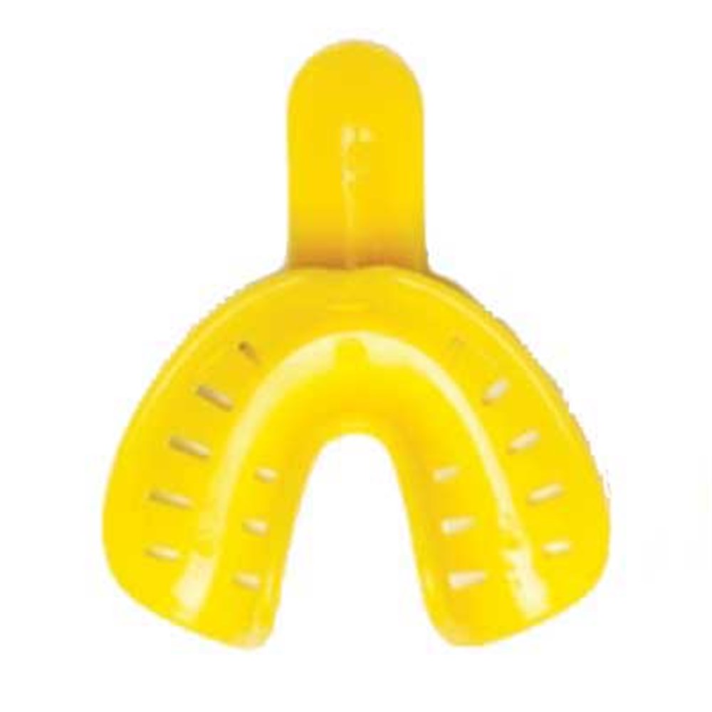 Retention Line holds alginate in place.Perforated for alginate retention.Reinforced tab for maximum strength.Rounded edges for patient comfort.Numbered and coloured for easy identification. Bag of 50 – Lower Yellow (Adult-Medium)