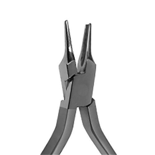 The round and concave beaks bend round or rectangular wire with a firm grip that will not score wire.  Bends wire up to .020.